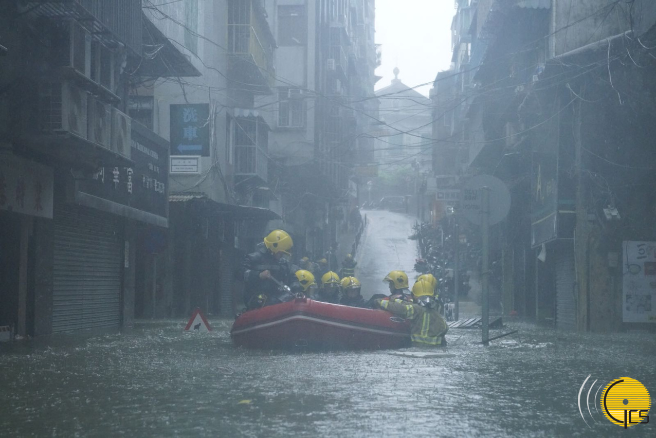 Pessoal das FSM, e de outros serviços, empenhado nos trabalhos de salvamento em várias zonas de Macau e continua a dar apoio aos trabalhos de evacuação.