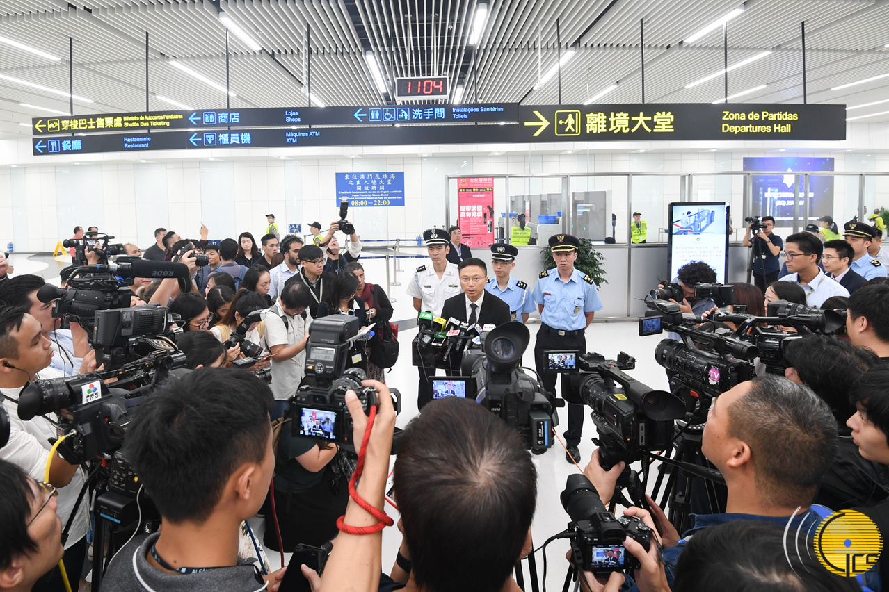 • Representantes dos serviços competentes organizam visita dos profissionais da comunicação de social ao posto fronteiriço de Macau na Ponte Hong Kong-Zhuhai-Macau para ficarem a conhecer o seu funcionamento.