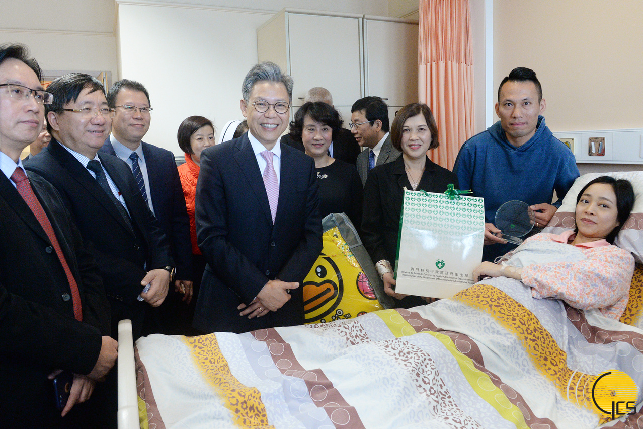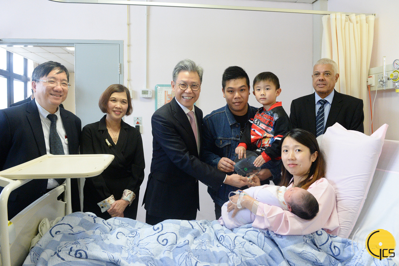 • Subdirector dos Serviços de Saúde e director do Centro Hospitalar Conde de São Januário, Kuok Cheong U, visita e oferece um presente ao primeiro bebé do Ano Novo Lunar do Porco, nascido no hospital público.
