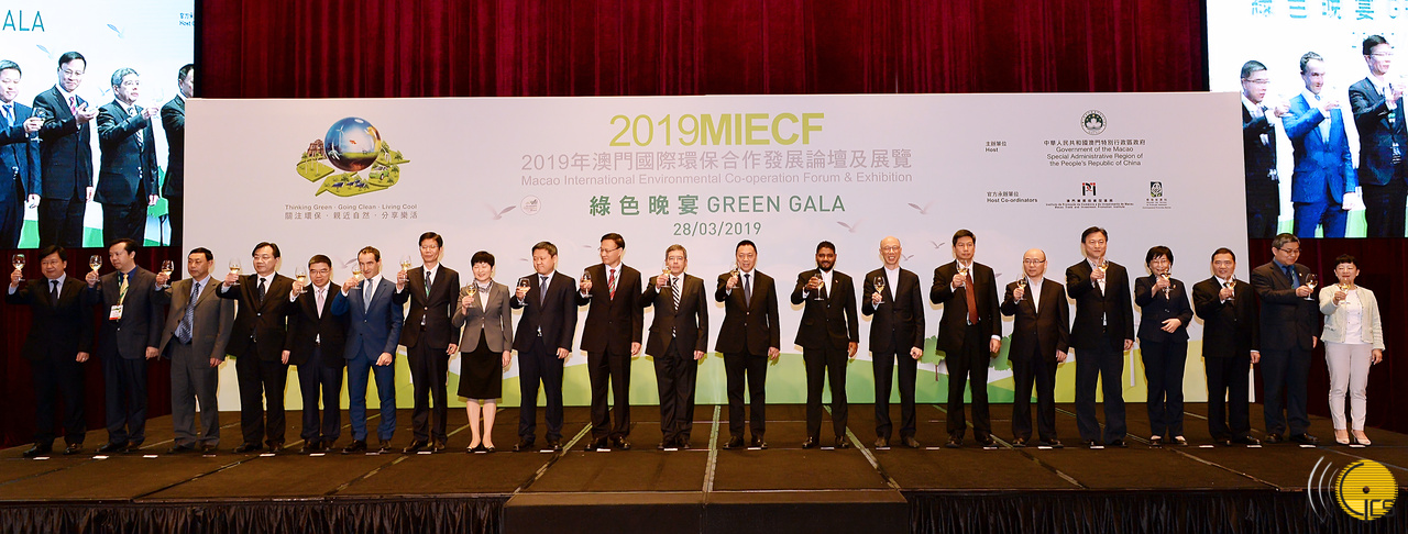 • Secretário para Economia e Finanças , Lionel Leong e secretário para Transporte e Obras Públicas, Raimundo do Rosário, na "Gala Verde" no âmbito do Fórum e Exposição Internacional de Cooperação Ambiental 2019.