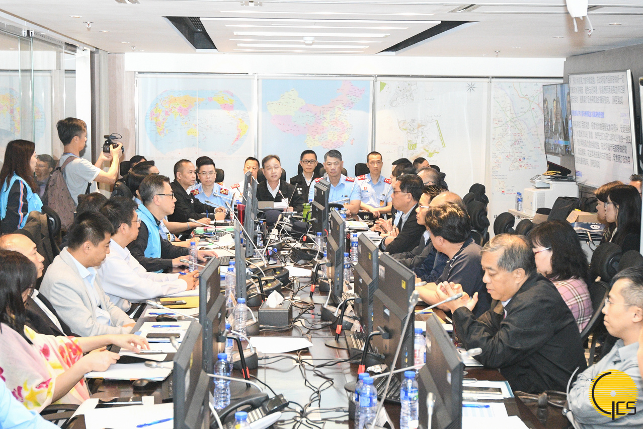 • Simulacro "Peixe Cristal 2019" - O comandante-geral dos Serviços de Polícia Unitários e comandante da Acção Conjunta, Ma Io Kun, preside Reunião da Estrutura de Protecção Civil, no Centro de Operações de Protecção Civil.