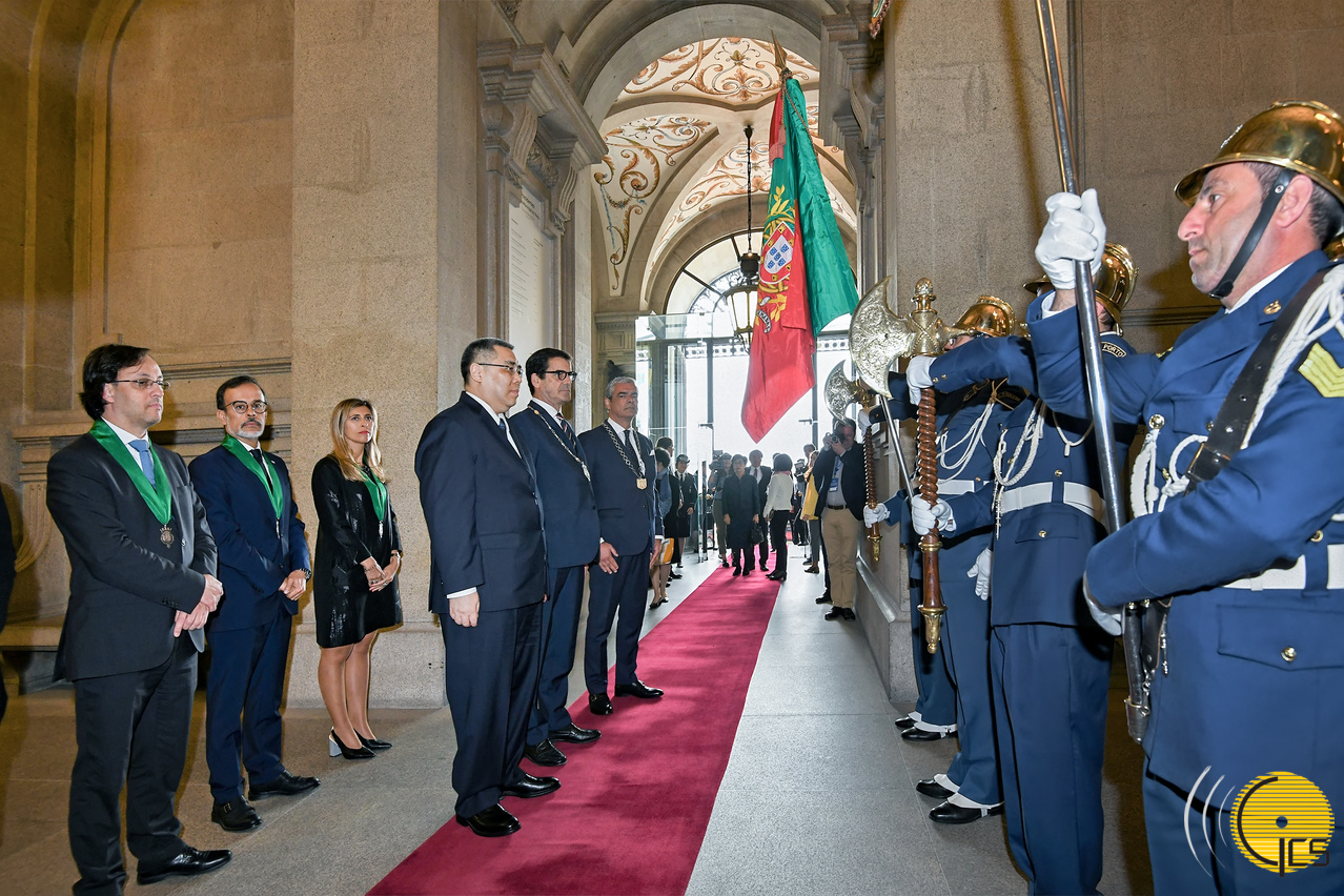 • Presidente da Câmara Municipal do Porto, Rui Moreira, e guardas de honra recebem o Chefe do Executivo do Governo da Região Administrativa Especial de Macau (RAEM), à porta da Câmara Municipal do Porto.