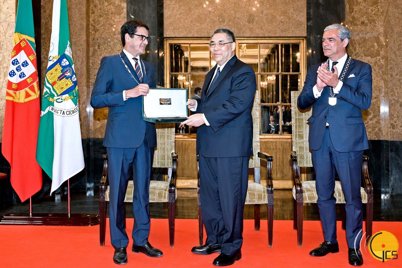 • O presidente da Câmara Municipal do Porto, Rui Moreira, entrega as Chaves da Cidade ao Chefe do Executivo do Governo da Região Administrativa Especial de Macau (RAEM), Chui Sai On.