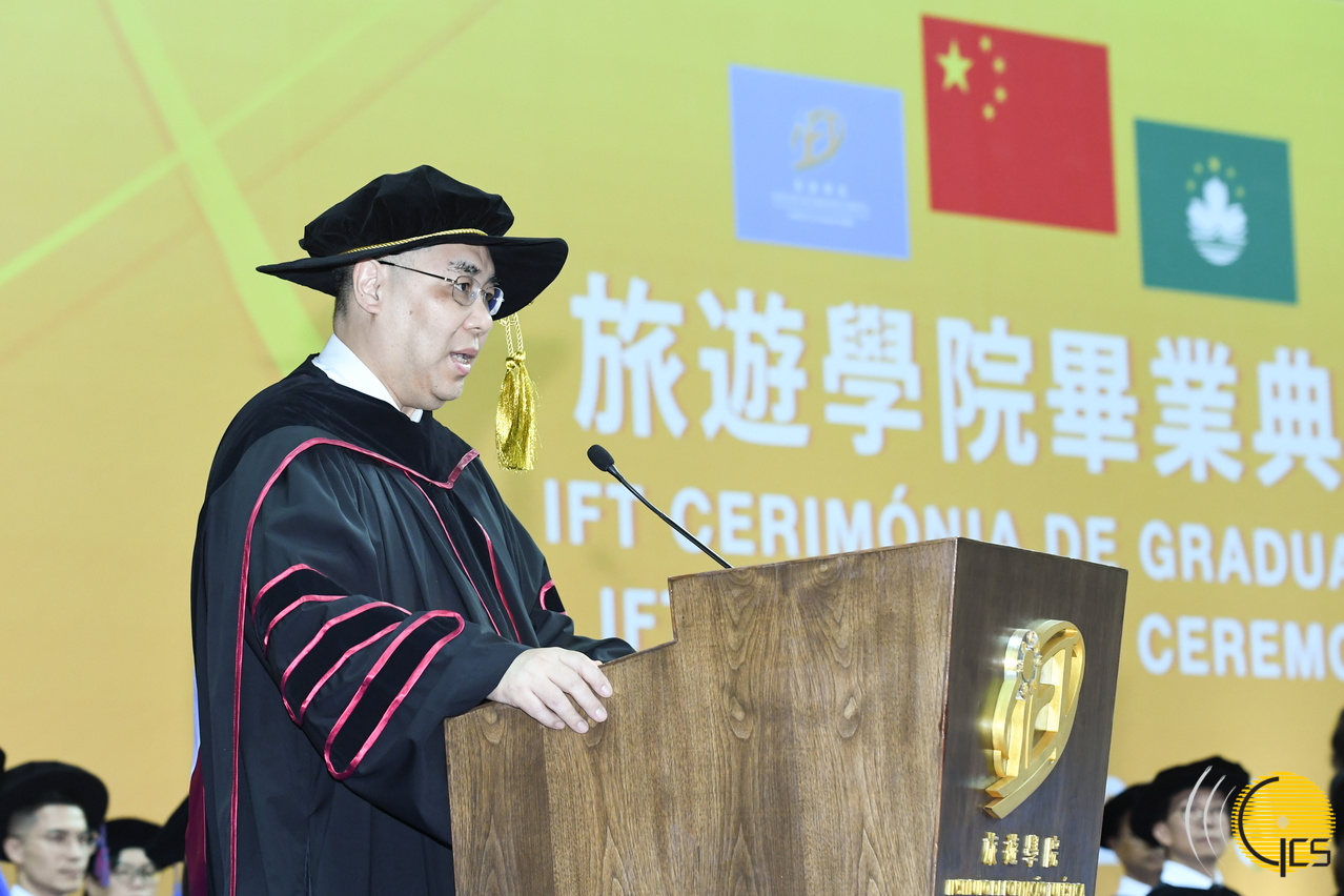 Chefe do Executivo, Chui Sai On, na cerimónia de graduação do Instituto de Formação Turística (IFT).