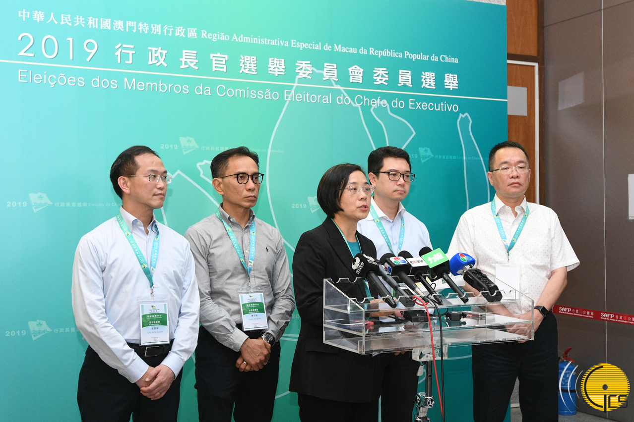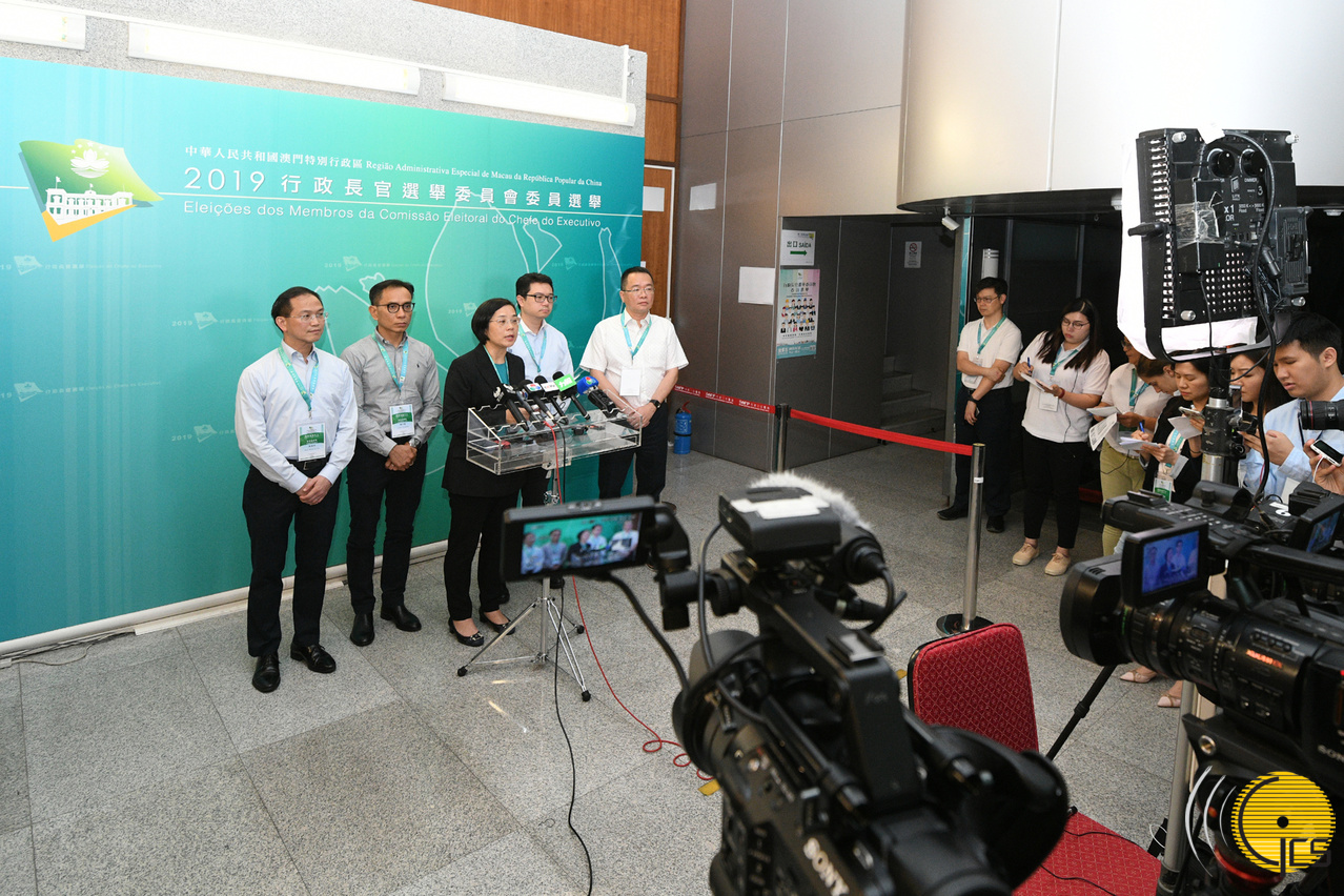 Eleições dos membros da Comissão Eleitoral do Chefe do Executivo de 2019: conferência de imprensa da Comissão de Assuntos Eleitorais do Chefe do Executivo (CAECE) sobre os resultados preliminares da contagem de votos.