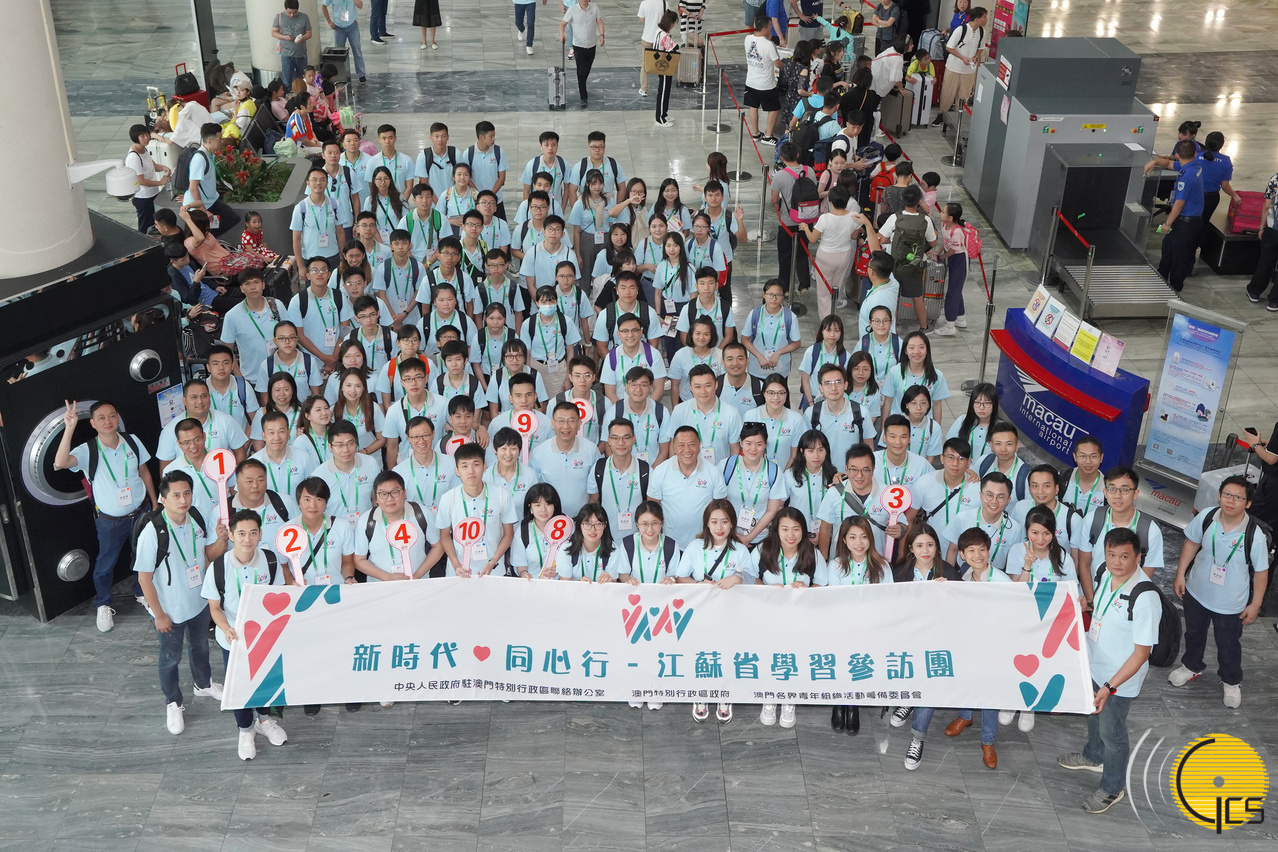 • Chefe da delegação da visita e aprendizagem intitulada «Caminhar juntos na Nova Era» na província de Jiangsu e secretário para a Economia e Finanças, Lionel Leong, no Aeroporto Internacional de Macau com os membros da delegação, antes da partida.