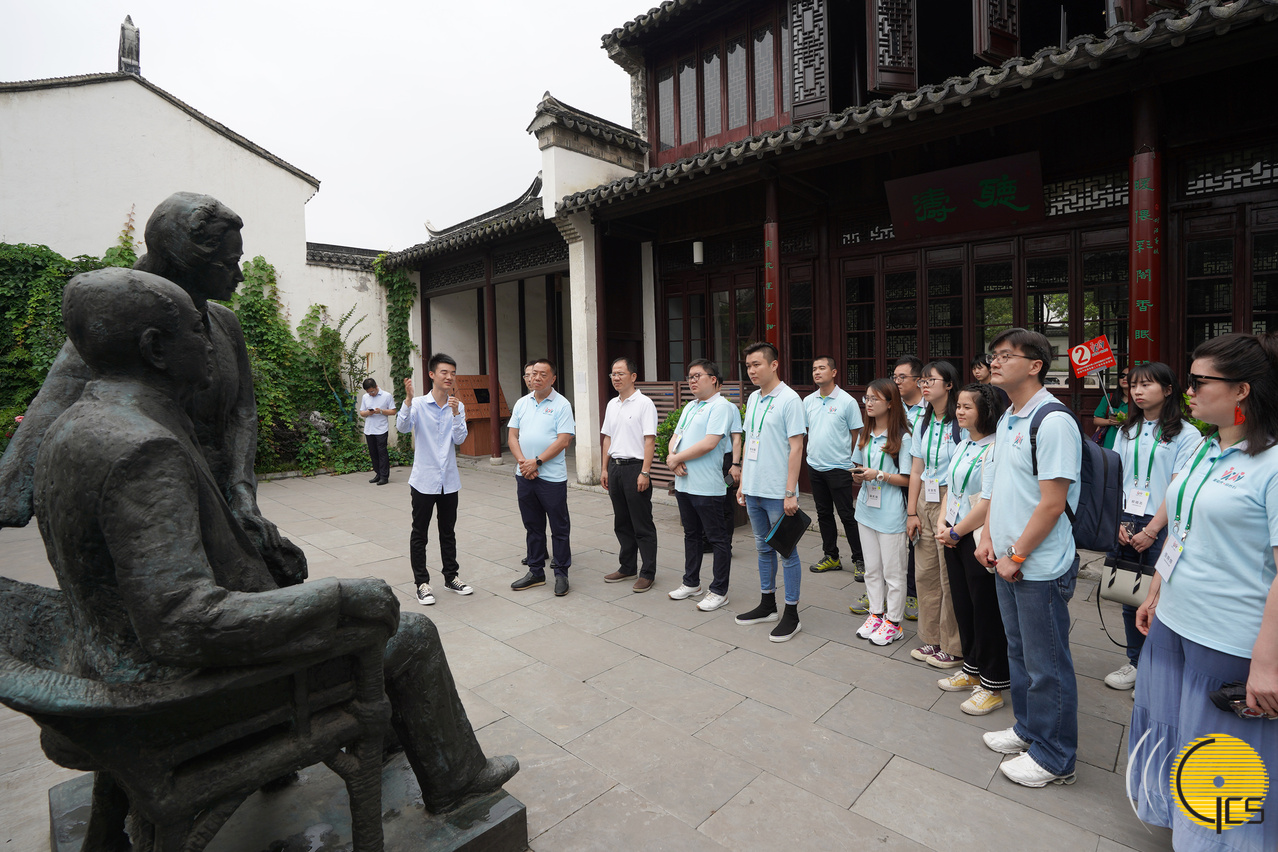 A delegação de visita e aprendizagem «Caminhar juntos na Nova Era» na rua histórica e cultural do Beco Qingguo, na província de Jiangsu.