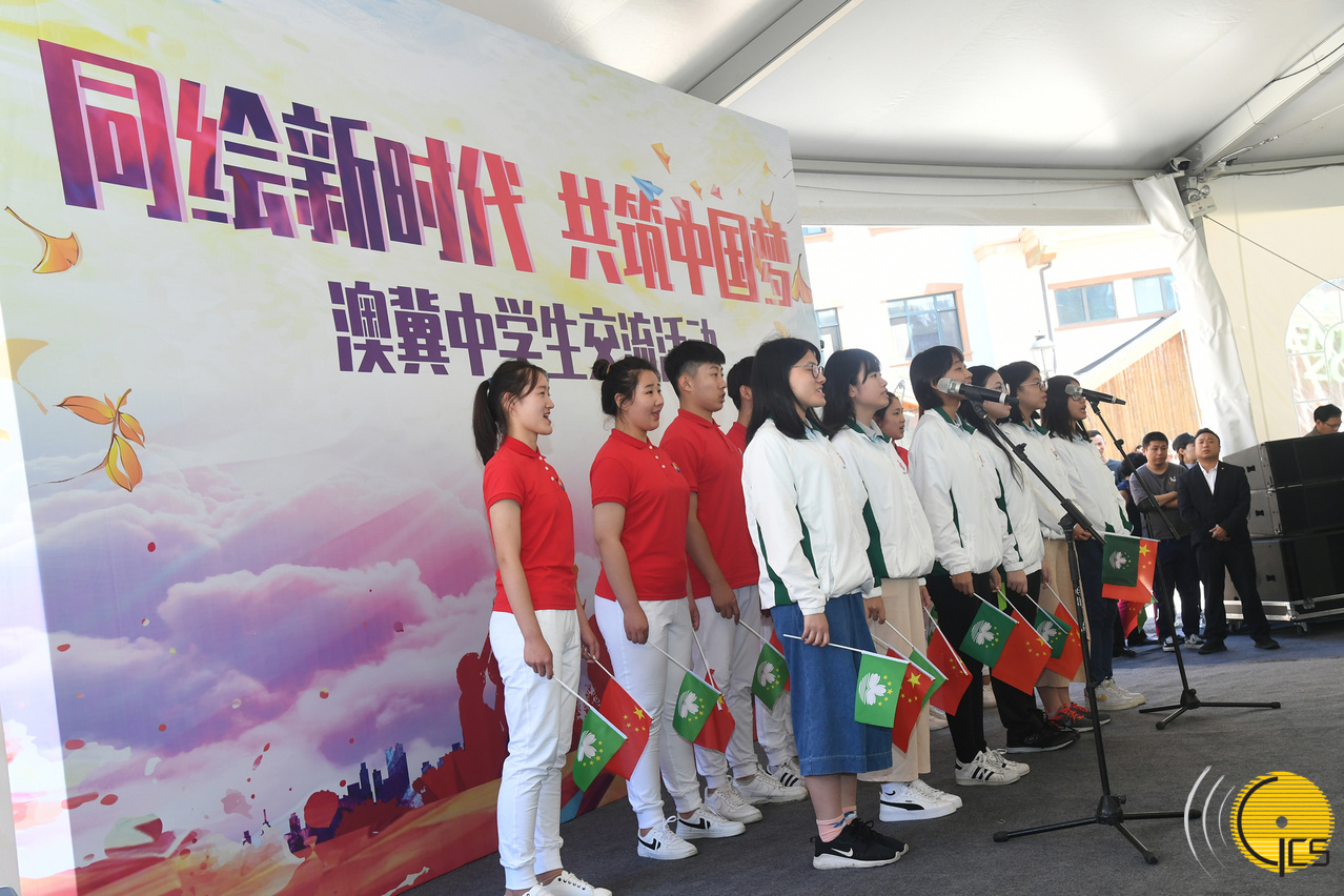 Chefe do Executivo, Chui Sai On, e os estudantes do ensino secundário da delegação de visita e aprendizagem «Caminhar juntos na nova era» a Hebei, na sessão de intercâmbio "Juntos traçamos uma Nova Era e concretizamos o sonho chinês " em Zhangjiakou.