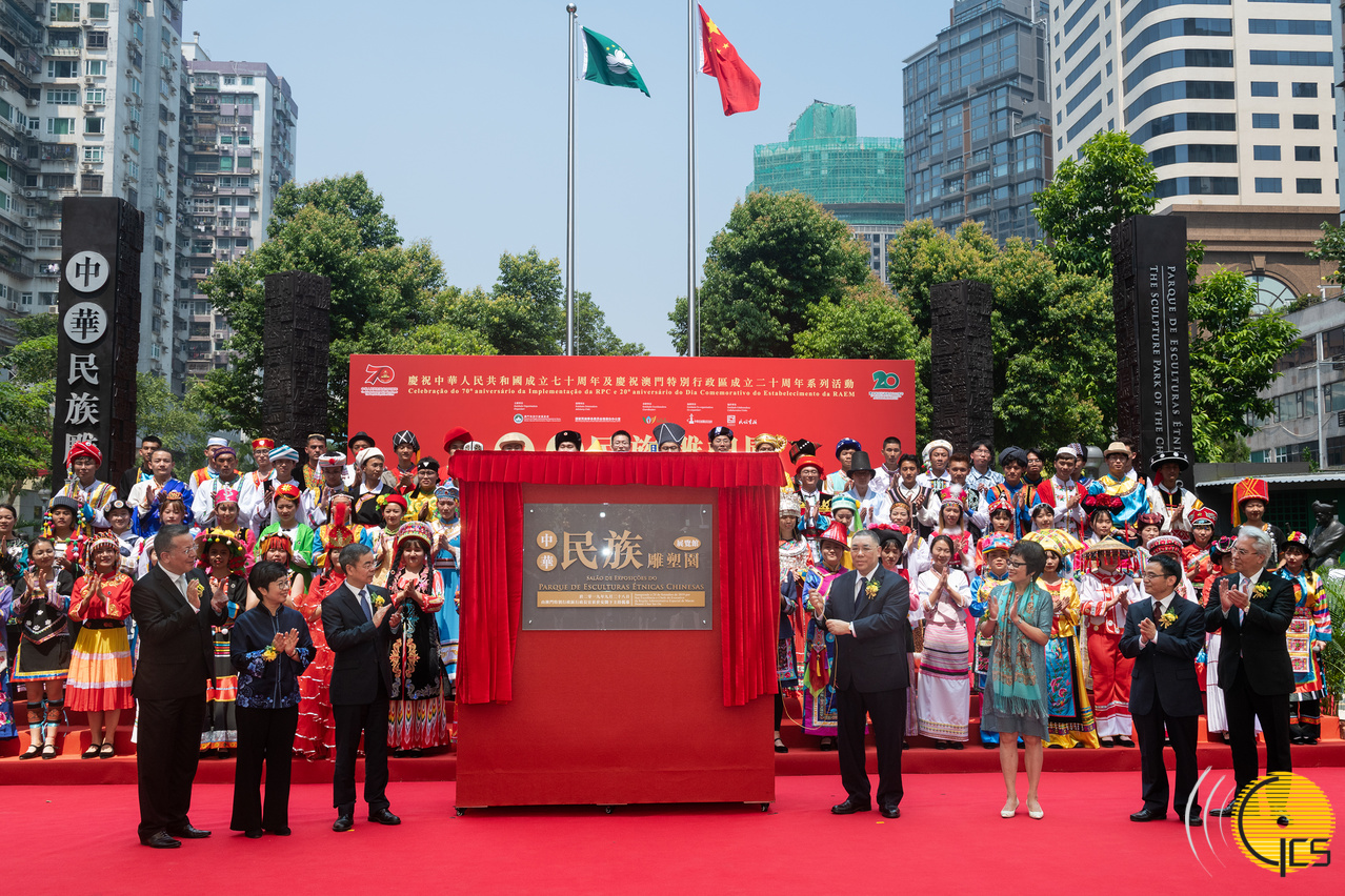 Chefe do Executivo, Chui Sai On presente na cerimónia de inauguração do Parque de Esculturas Étnicas Chinesas, no Jardim Ho Yin no âmbito da comemoração do 70º Aniversário da Implantação da República Popular da China (RPC) e do 20º Aniversário do Estabelecimento da Região Administrativa Especial de Macau