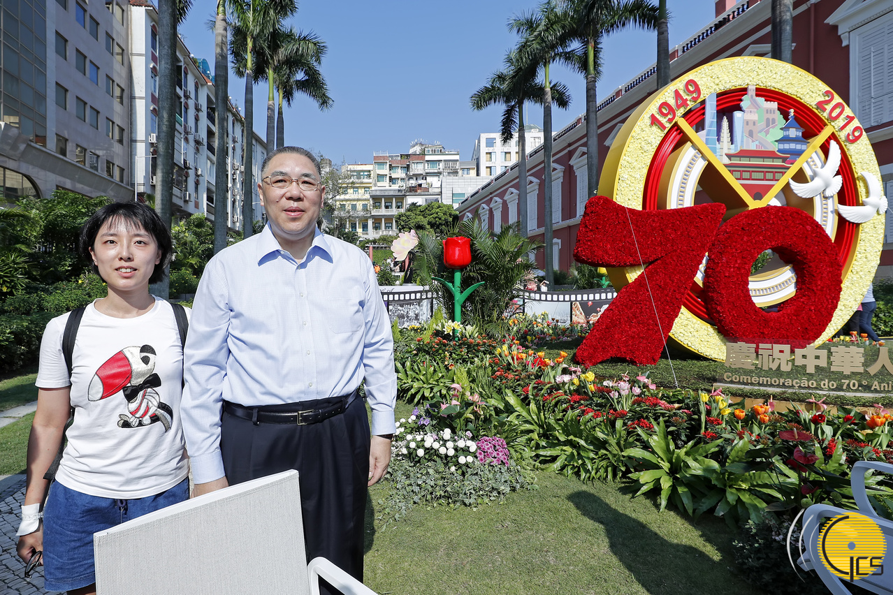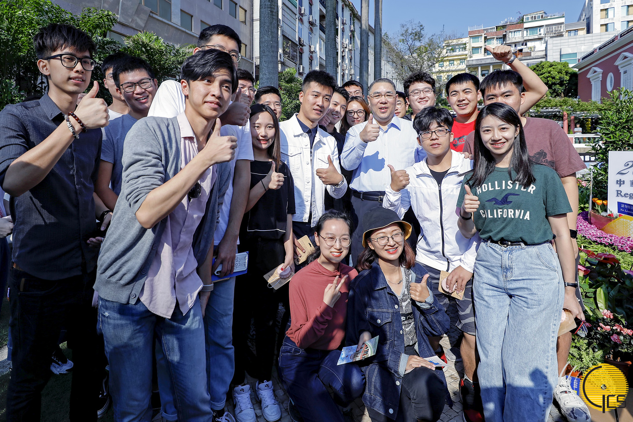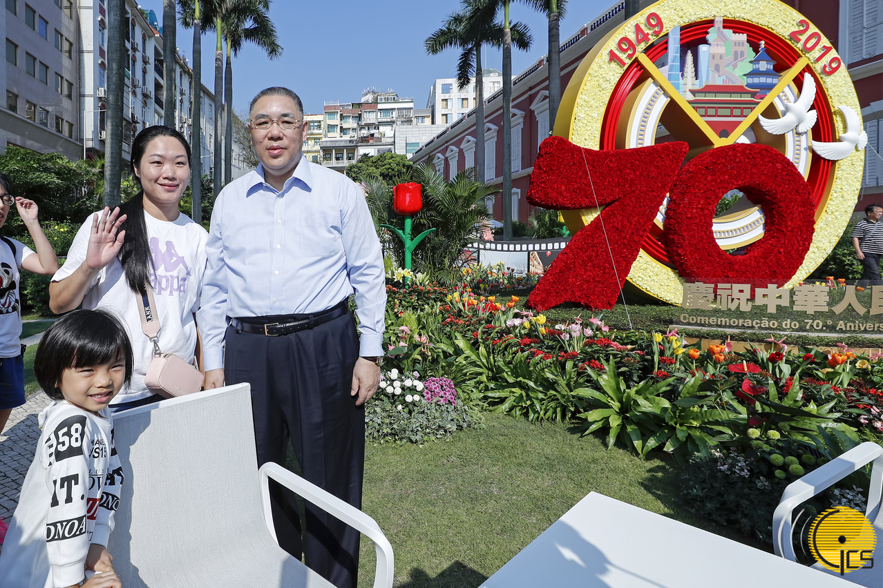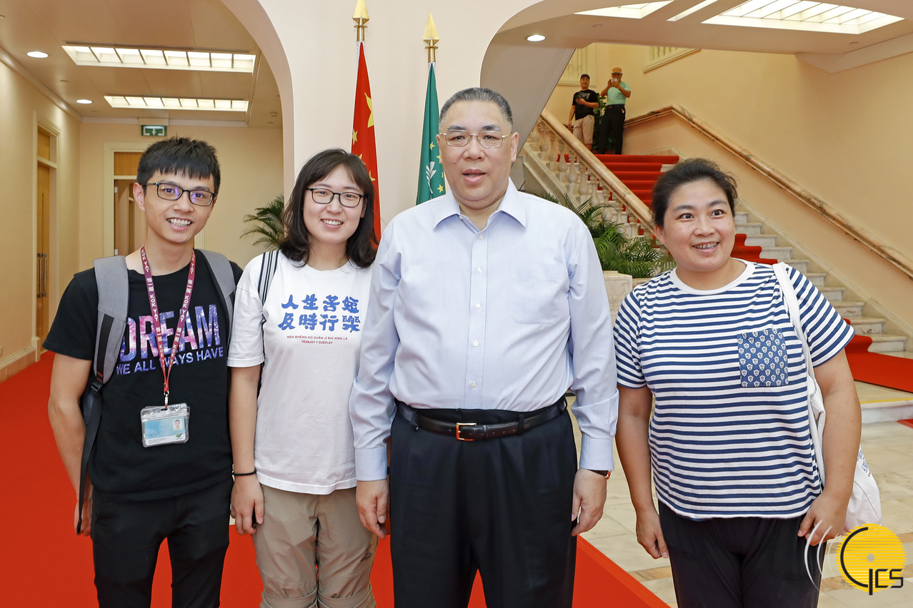 • Chefe do Executivo, Chui Sai On, posa para fotografia com visitantes, durante o primeiro Dia Aberto da Sede do Governo.