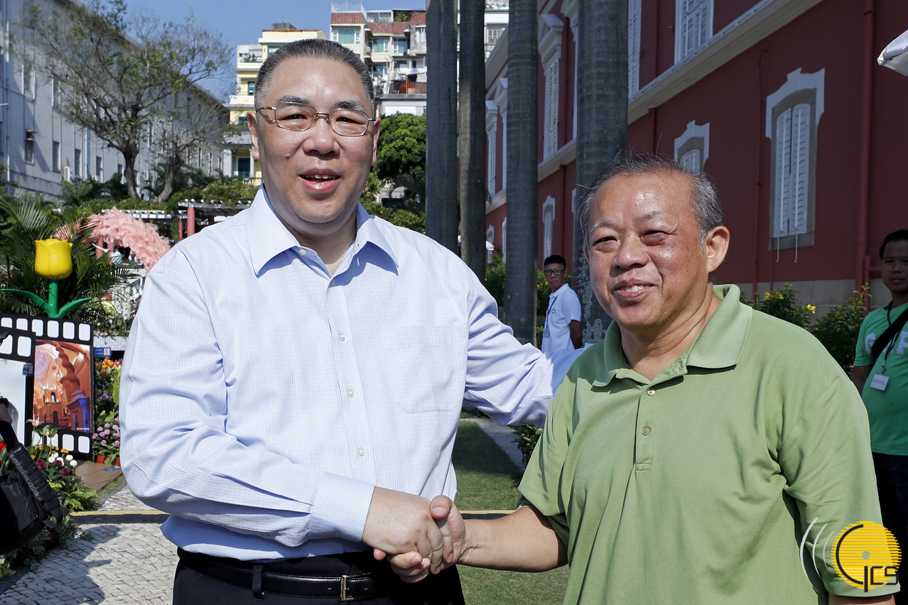 • Chefe do Executivo, Chui Sai On, cumprimenta público que visita a Sede do Governo.