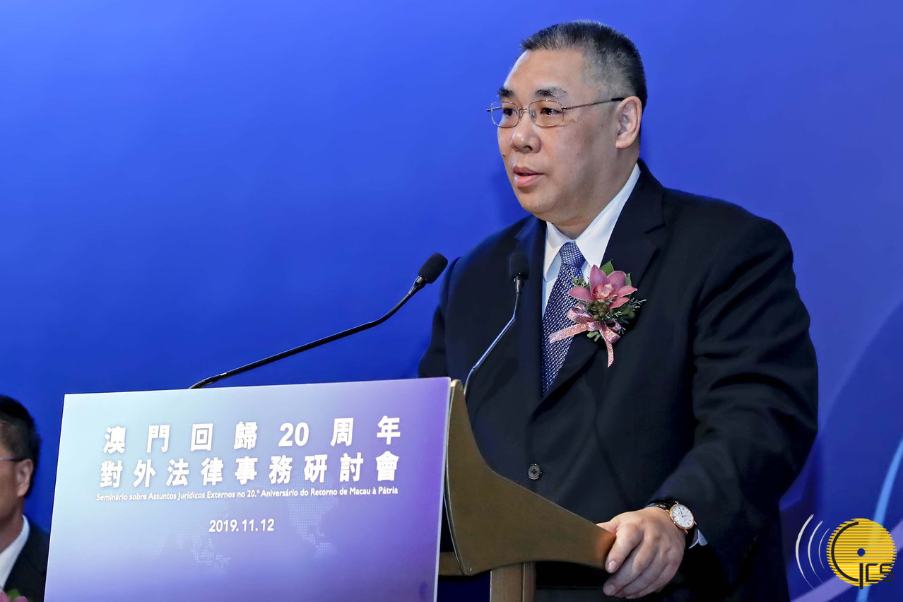 Chefe do Executivo, Chui SAI oN, na cerimónia de inauguração da exposição de fotografias e Seminário sobre Assuntos Jurídicos Externos no 20º Aniversário do Retorno de Macau à Pátria.