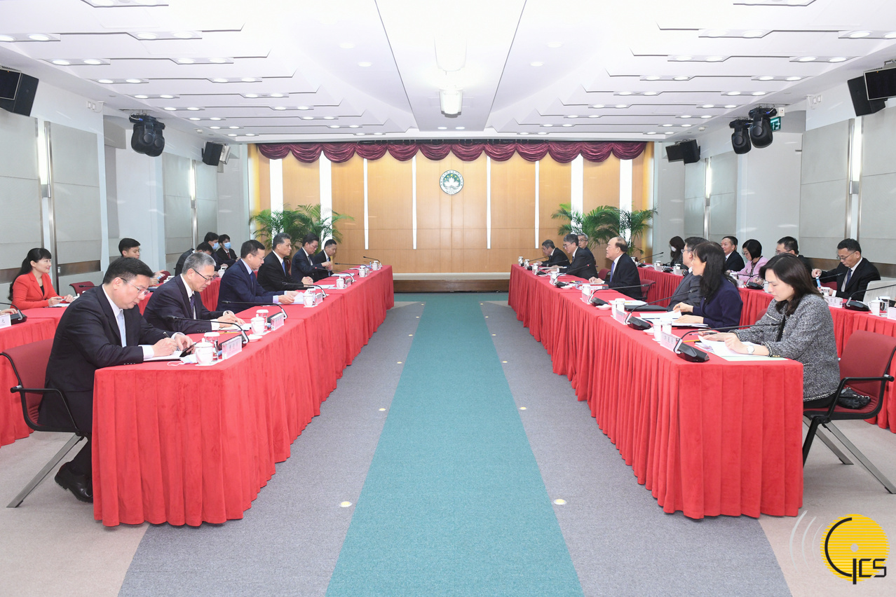 • Chefe do Executivo, Ho Iat Seng, e o governador da província de Guangdong, Ma Xingrui, chefiam respectivas delegações na reunião de trabalho sobre o projecto geral de reforço de cooperação entre Guangdong e Macau.