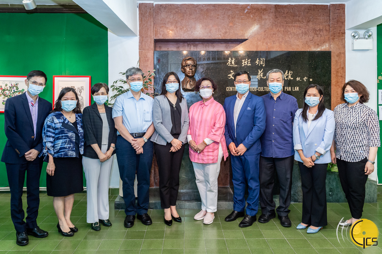 Directora do Gabinete de Comunicação Social (GCS), Inês Chan, lidera a sua equipa numa visita às instalações do Jornal Va Kio, para trocar opiniões sobre como promover o desenvolvimento do sector.