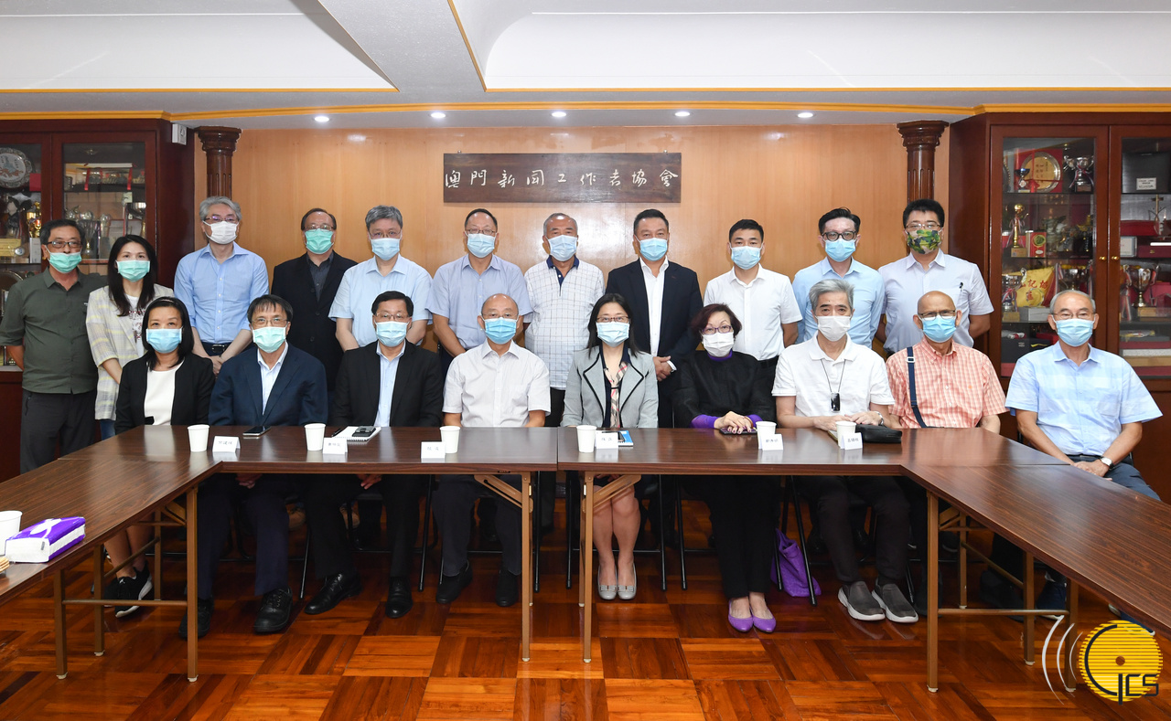 Directora do Gabinete de Comunicação Social (GCS), Inês Chan, lidera a sua equipa numa visita às instalações da Associação dos Trabalhadores da Comunicação Social de Macau, onde trocam opiniões sobre o desenvolvimento do sector de comunicação social.