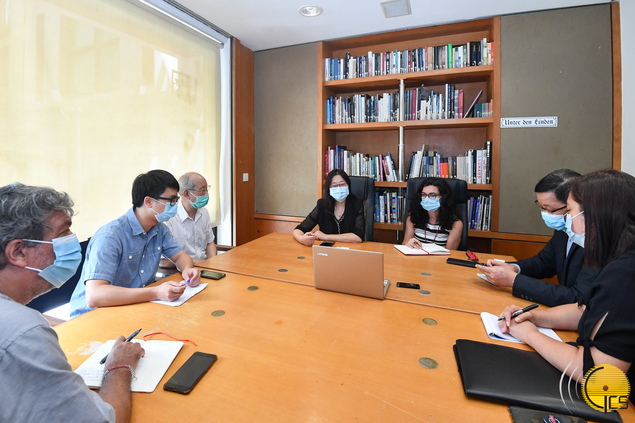 Directora do Gabinete de Comunicação Social, Inês Chan, acompanhada do subdirector, Wong Lok I, visita as instalações do semanário bilingue Plataforma para uma troca de opiniões sobre o funcionamento e desenvolvimento do jornal.