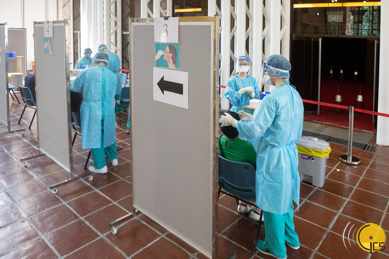 O posto de testes de ácido nucleico para a COVID 19, no Fórum de Macau, em funcionamento a partir de hoje (21 de Julho).