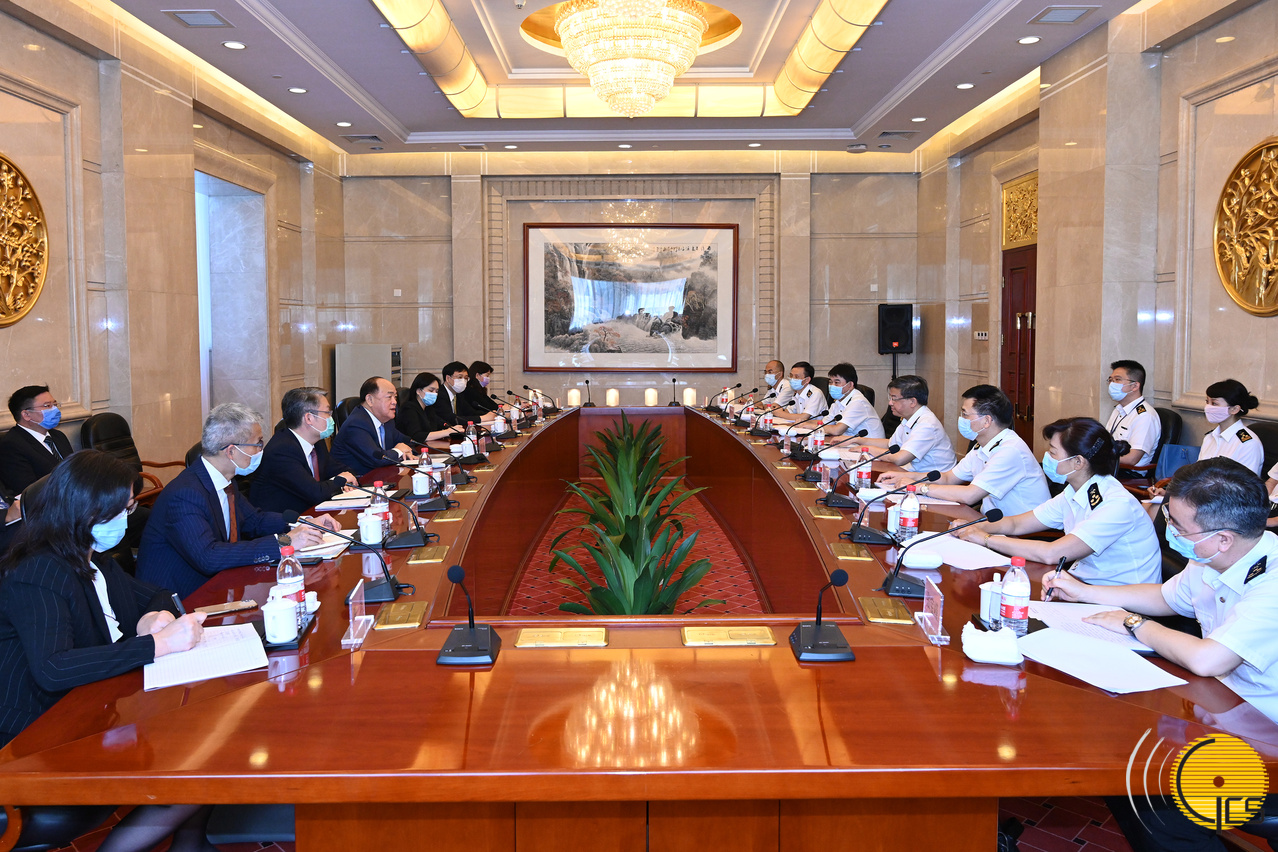• Chefe do Executivo, Ho Iat Seng, num encontro com o director da Administração Geral da Alfândega, Ni Yuefeng, em Pequim.
