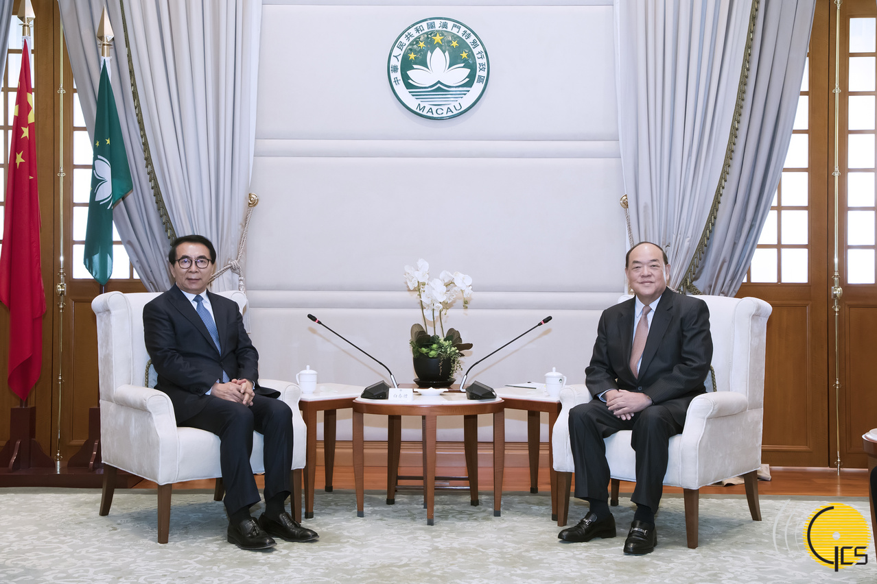 Chefe do Executivo, Ho Iat Seng, tem encontro com o presidente da Academia de Ciências da China e presidente da Aliança de Organizações Científicas Internacionais (ANSO), Bai Chunli.