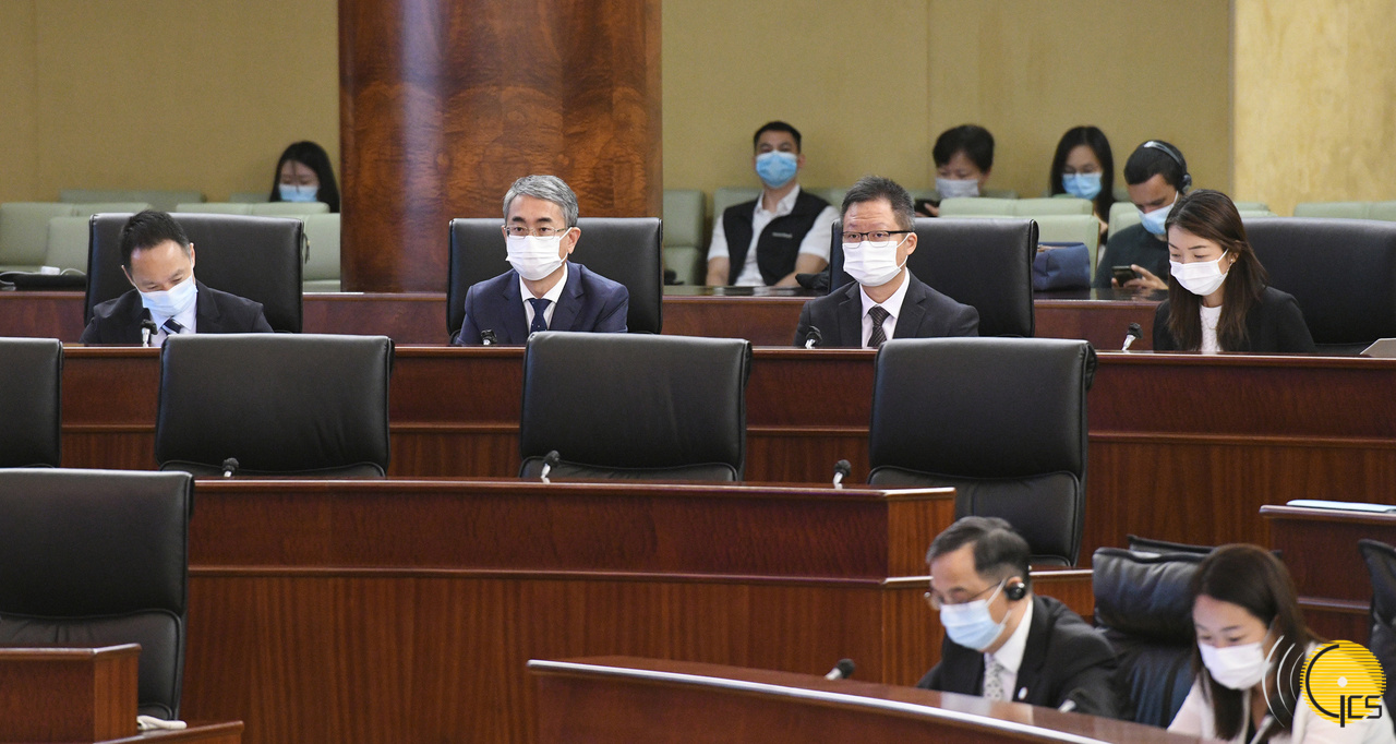 • Secretário para a Administração e Justiça, André Cheong, na reunião plenária da Assembleia Legislativa, para discussão e votação na especialidade da proposta de lei intitulada “Alteração à Lei n.º 5/1999 – Utilização e protecção da Bandeira, Emblema e Hino Nacionais".