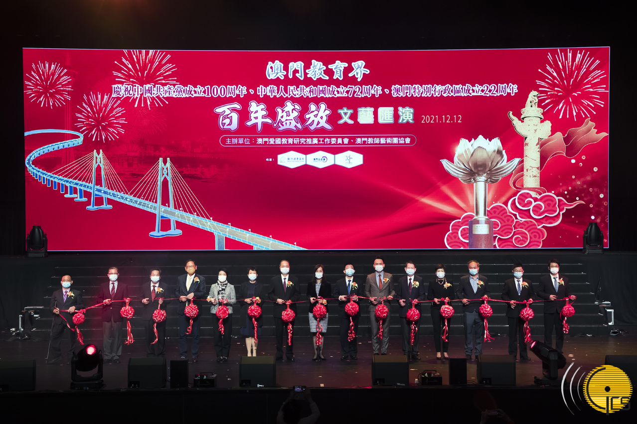 • Secretária para os Assuntos Sociais e Cultura, Ao Ieong U, num espectáculo do sector educativo de Macau, no âmbito das celebrações do 100º aniversário do Partido Comunista da China, do 72º aniversário da Implantação da República Popular da China, e do 22º aniversário da Região Administrativa Especial de Macau.