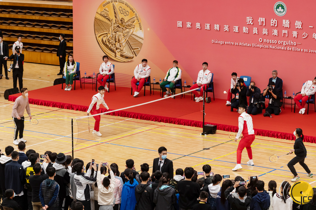 • O nosso orgulho – Diálogo entre os Atletas Olímpicos Nacionais de Elite e os jovens atletas de Macau realizado no Pavilhão Desportivo do Centro Desportivo Olímpico.