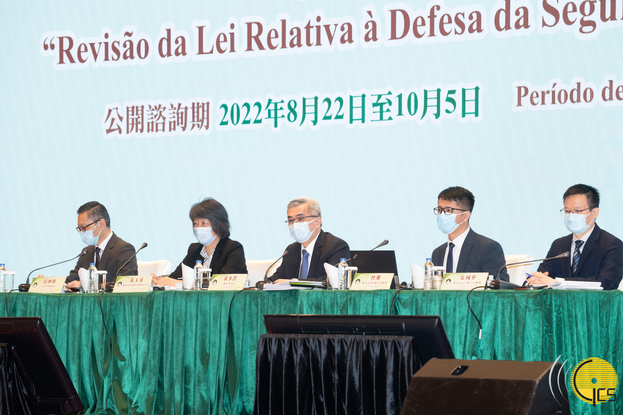 Governo da RAEM realiza sessão de consulta pública sobre a revisão da «Lei relativa à defesa da segurança do Estado» exclusivamente destinada ao sector social e cultural.