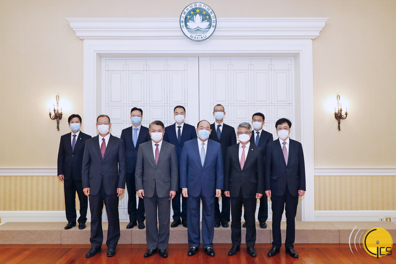 • Chefe do Executivo, Ho Iat Seng, o vice-presidente do Banco da China, Lin Jingzhen, e respectiva comitiva.