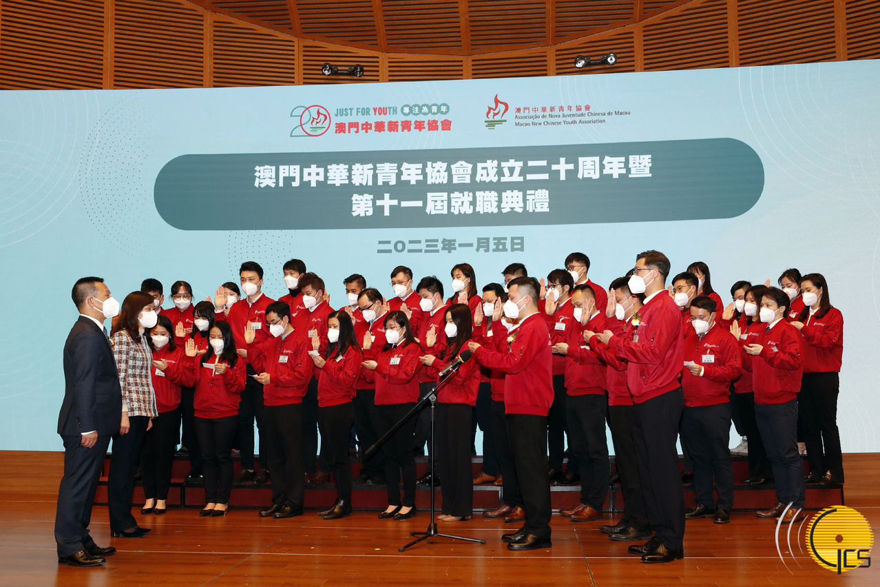 • Secretária para os Assuntos Sociais e Cultura , Ao Ieong U na cerimónia de tomada de posse da 11ª direcção da Associação de Nova Juventude Chinesa de Macau.