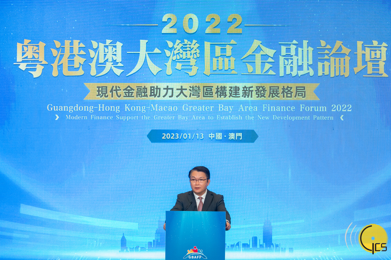 • Secretário para a Economia e Finanças, Lei Wai Nong, em representação do Chefe do Executivo, discursa na inauguração do Fórum Financeiro da Grande Baía Guangdong-Hong Kong-Macau 2023.