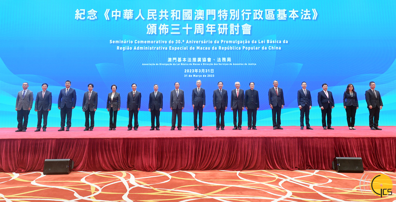 • Secretário para a Administração e Justiça, André Cheong, no "Seminário Comemorativo do 30.º Aniversário da Promulgação da Lei Básica da Região Administrativa Especial de Macau da República Popular da China".