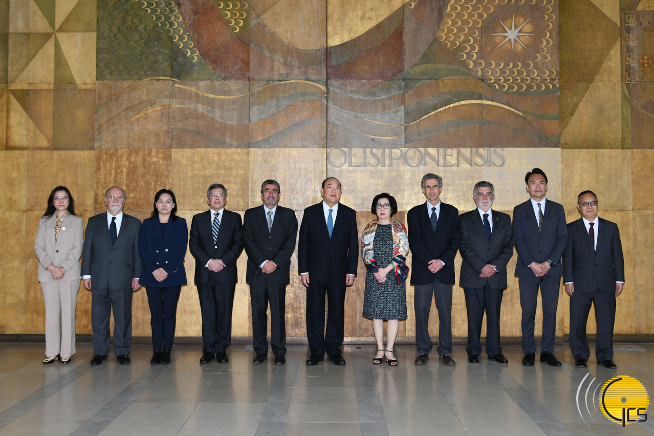 • Chefe do Executivo, Ho Iat Seng, e o reitor da Universidade de Lisboa, Luís Ferreira, e outros responsáveis , no âmbito da visita à universidade de Lisboa.