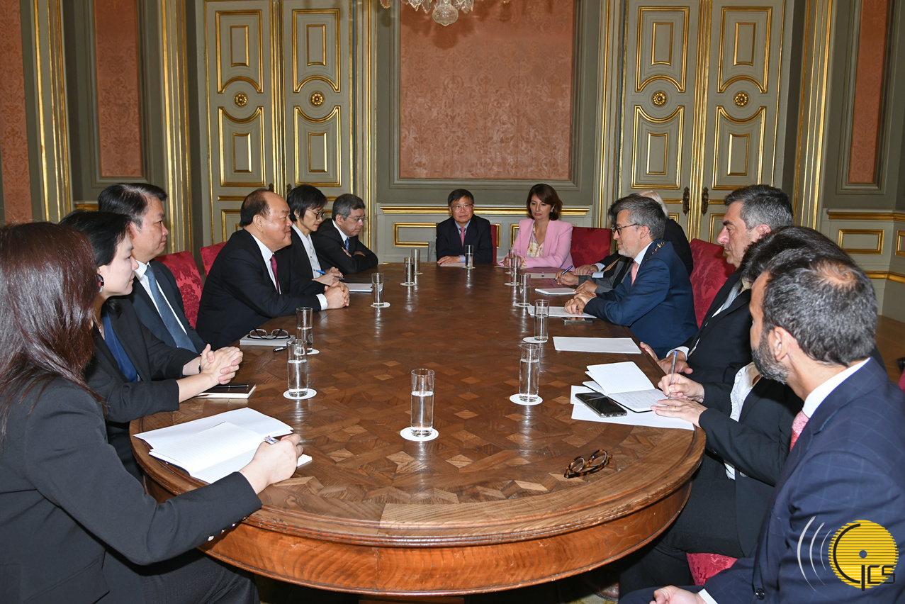 Chefe do Executivo, Ho Iat Seng, reúne-se com o presidente da Câmara Municipal de Lisboa, Carlos Moedas, no âmbito da visita a Portugal.