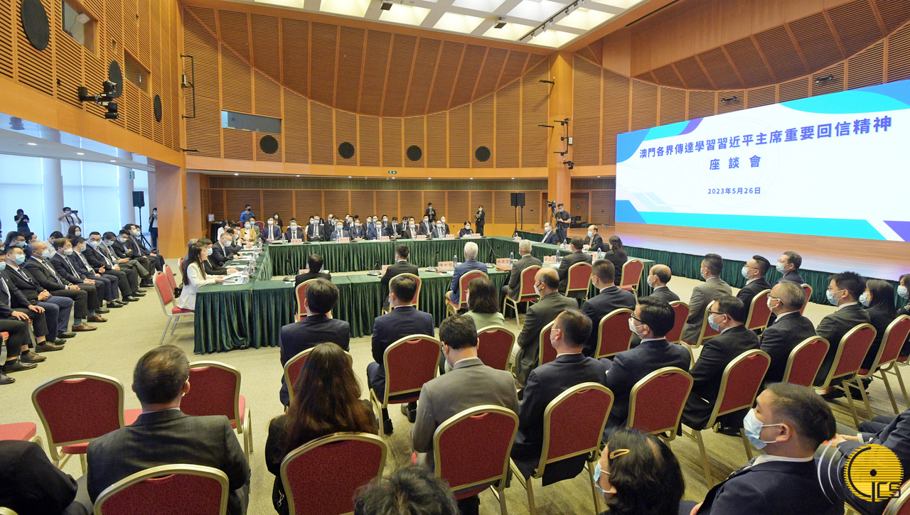 • Colóquio destinado aos diversos sectores de Macau para transmissão e aprendizagem do espírito da importante carta de resposta do Presidente Xi Jinping, realizado no Salão de Convenções do Centro de Convenções do Centro de Ciência de Macau.