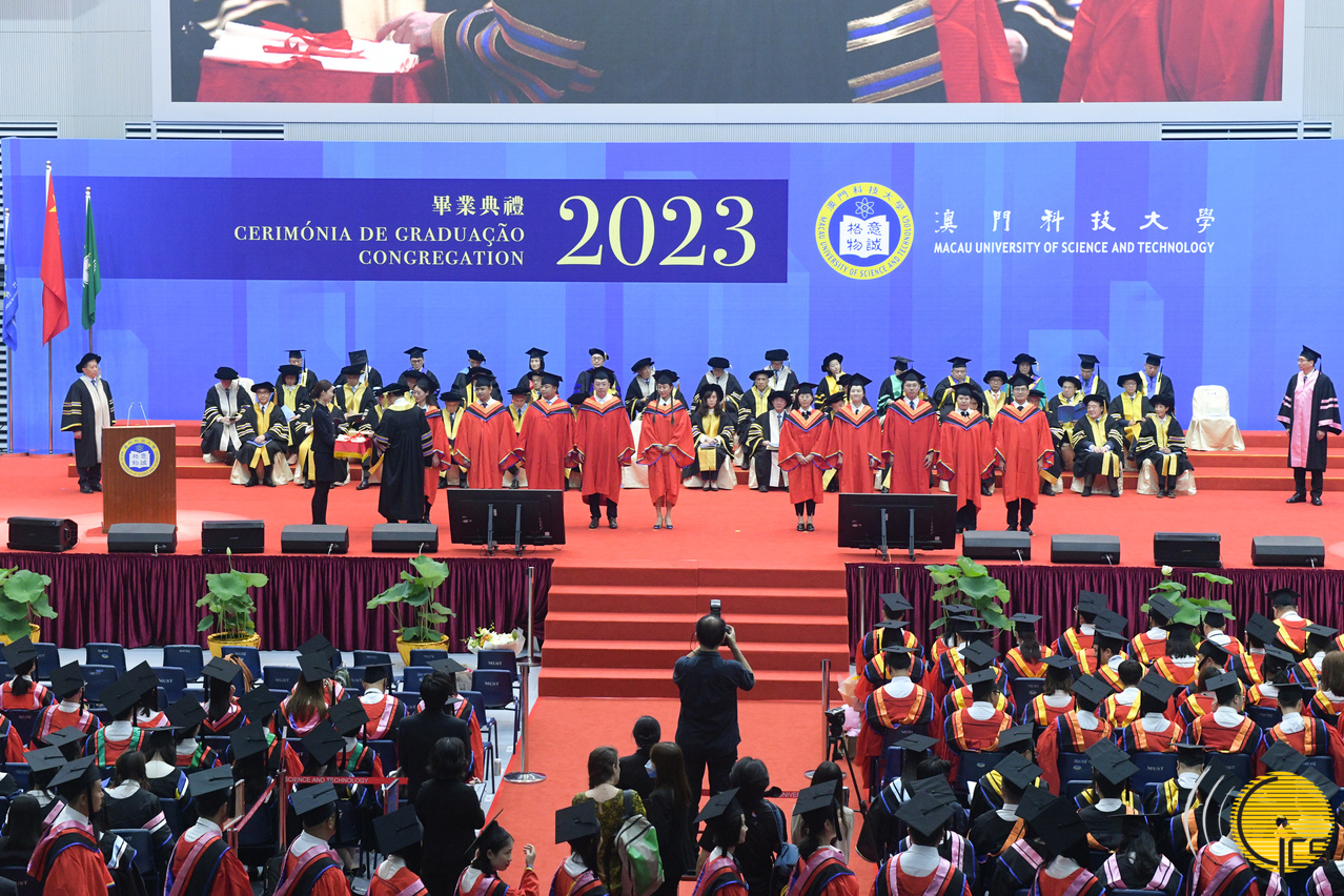 • Secretária para os Assuntos Sociais e Cultura, Ao Ieong U, em nome do Chefe do Executivo, presente na cerimónia de graduação da Universidade de Ciência e Tecnologia de Macau.