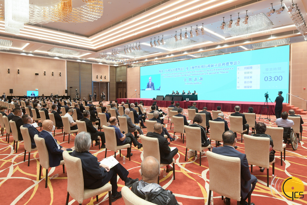 • Secretário para a Administração e Justiça, André Cheong, presente na consulta pública sobre a “Revisão da Lei Eleitoral para o Chefe do Executivo e da Lei Eleitoral para a Assembleia Legislativa da Região Administrativa Especial de Macau” 2ª Sessão destinada aos sectores específicos.