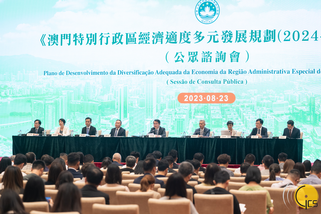 • Secretário para a Economia e Finanças, Lei Wai Nong, na primeira sessão de consulta pública sobre o “Plano de Desenvolvimento da Diversificação Adequada da Economia da Região Administrativa Especial de Macau (2024-2028)”.