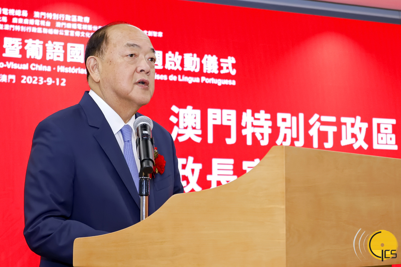 • Chefe do Executivo, Ho Iat Seng, discursa na cerimónia de inauguração da Semana de Exibição de "Audio-Visual China ‧ Histórias de Macau" e dos Países de Língua Portuguesa.