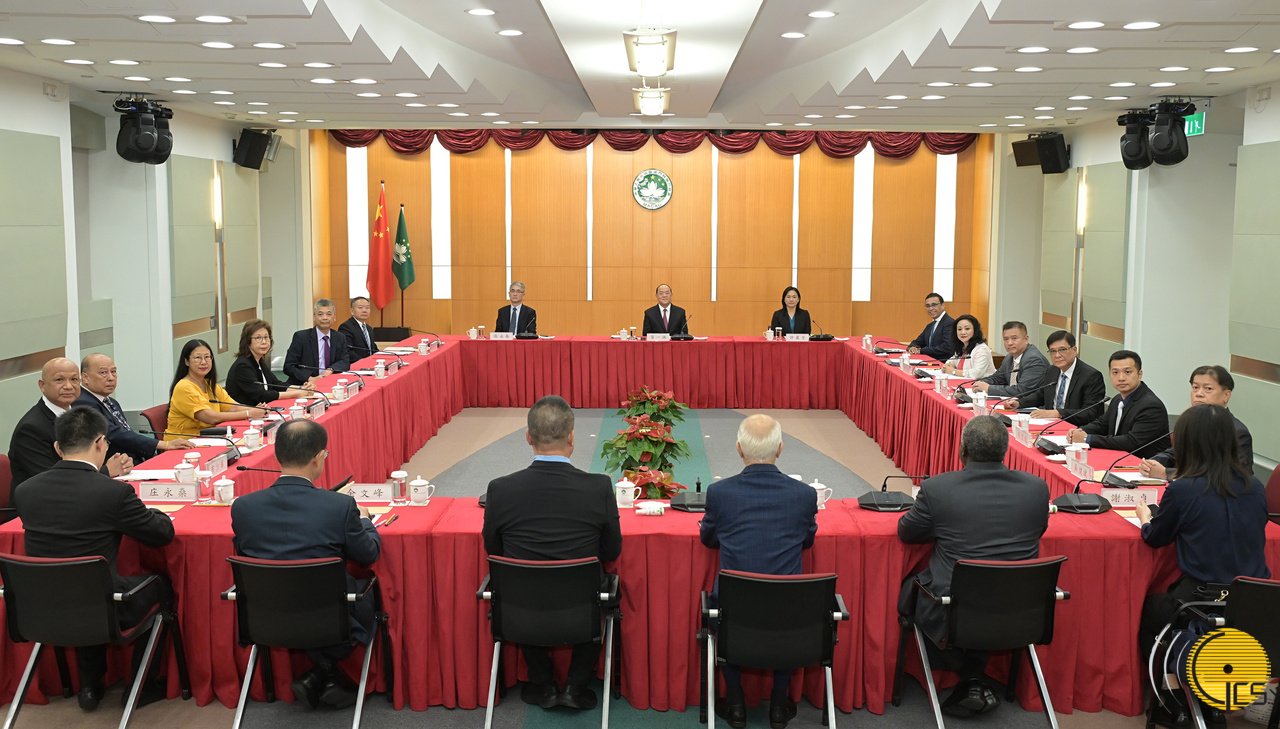 • Chefe do Executivo, Ho Iat Seng, e representantes da Associação dos Trabalhadores da Função Pública de Macau, na Sede do Governo.