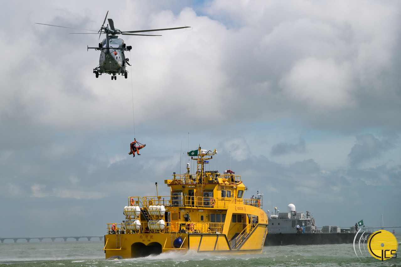 • Exercício conjunto de busca e salvamento no mar com a participação de Guangdong, Hong Kong e Macau 2023 - salvamento de ferídos que caíram no mar.