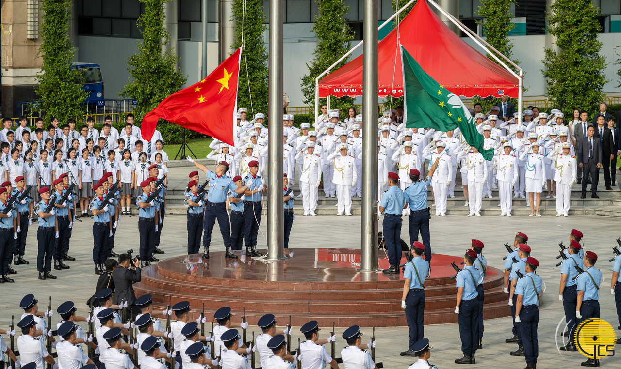 • Governo da Região Administrativa Especial de Macau realiza cerimónia do içar das bandeiras, no âmbito das comemorações do 74.º aniversário da implantação da República Popular da China, na Praça Flor de Lótus Dourado.