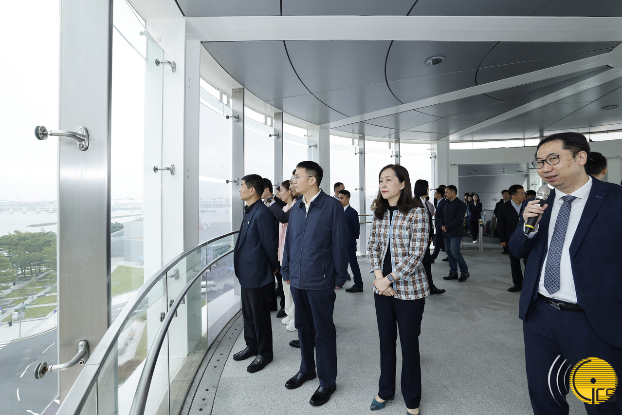 • A delegação observa a costa de Macau a partir do Pavilhão Panorâmico do Centro de Ciência de Macau.