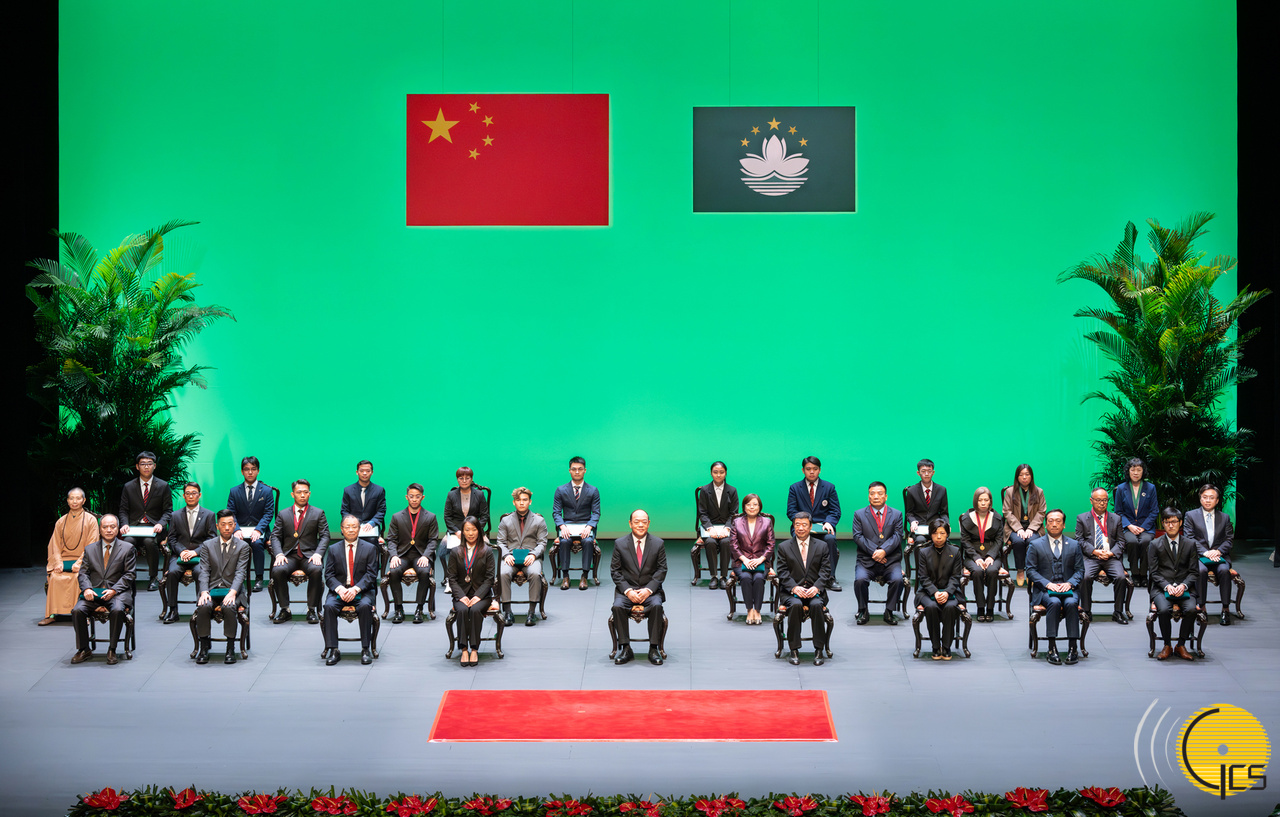 • Chefe do Executivo, Ho Iat Seng, na Cerimónia de Imposição de Medalhas e Títulos Honoríficos do Ano de 2023 da Região Administrativa Especial de Macau da República Popular da China.