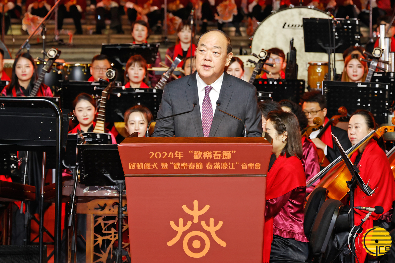 • Chefe do Executivo, Ho Iat Seng, na cerimónia de lançamento do “Feliz Ano Novo Chinês” 2024 e Concerto “Feliz Ano Novo Chinês, Primavera de Macau”.