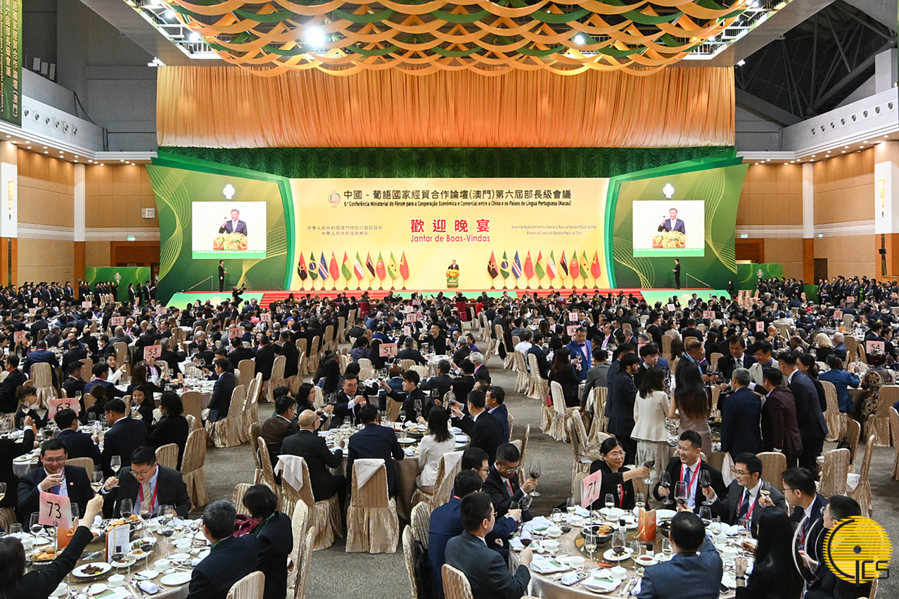 O jantar de boas-vindas da VI Conferência Ministerial do Fórum para a Cooperação Económica e Comercial entre a China e os Países de Língua Portuguesa (Macau) foi realizado no Centro de Convenções Internacionais da Nave Desportiva dos Jogos da Ásia Oriental de Macau, e contou com a presença do membro do Politburo do Comité Central do Partido Comunista da China e vice-presidente do Comité Permanente da Assembleia Popular Nacional, Li Hongzhong, e os representantes dos países de língua portuguesa participantes do Forum.