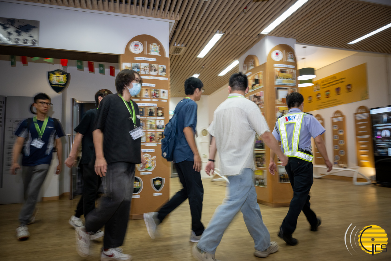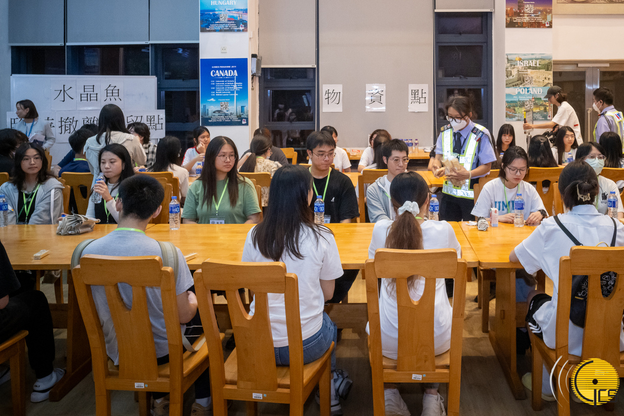 • Simulacro de tufão “Peixe Cristal 2024”-- Falha de energia no Moon Chun Memorial College da Universidade de Macau, os moradores são guiados pela universidade até à zona de evacuação de forma ordenada.