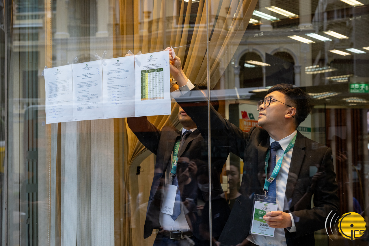 • Presidente da Assembleia de Apuramento Geral, Kuok Kin Hong, publica e afixa os resultados do apuramento geral das eleições dos membros da Comissão Eleitoral do Chefe do Executivo.