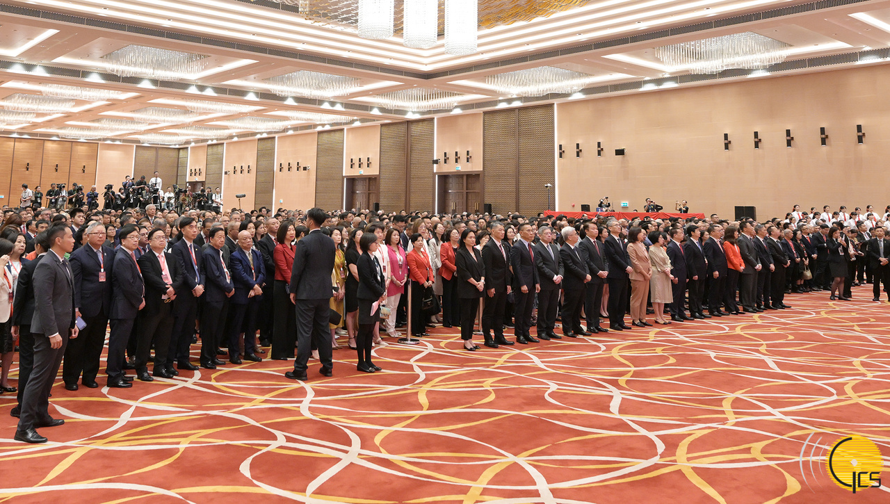 • Chefe do Executivo, Ho Iat Seng, e os convidados na recepção oficial do Governo da RAEM, no âmbito das comemorações do 75.º aniversário da implantação da República Popular da China.