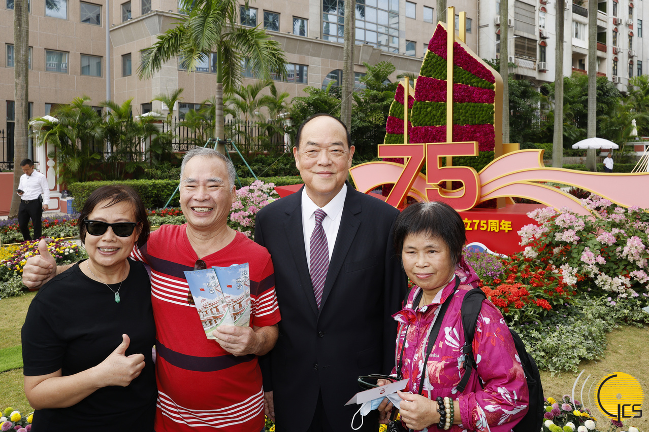 • Chefe do Executivo, Ho Iat Seng, conversa e tira fotografias com os visitantes, no dia de abertura da Sede do Governo, partilhando a atmosfera de alegria do“Duplo Aniversário”.