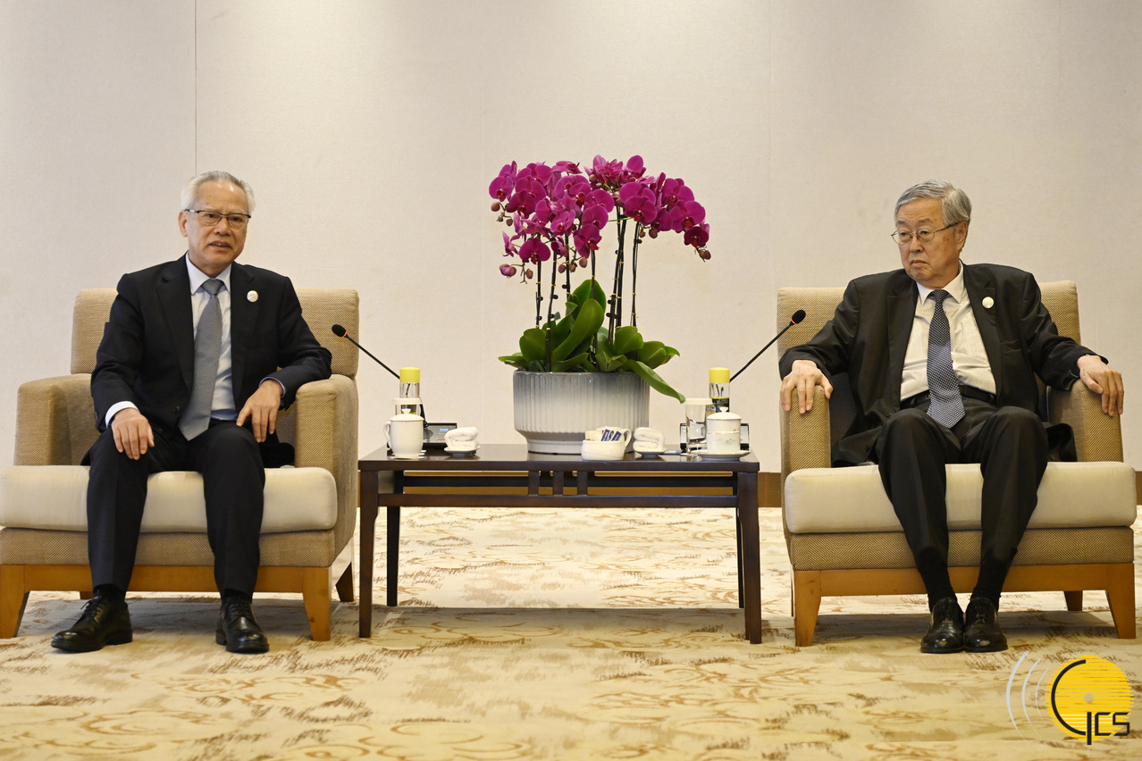 Chefe do Executivo, Sam Hou Fai, reúne-se com o vice-presidente do Fórum Boao para a Ásia e antigo governador do Banco Popular da China, Zhou Xiaochuan, na província de Hainão.